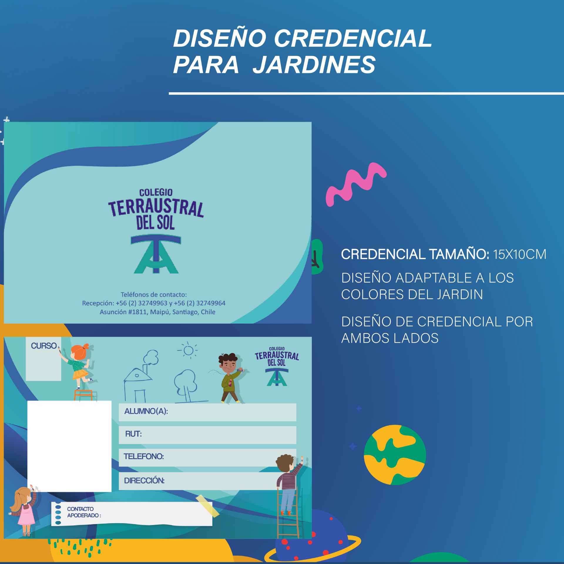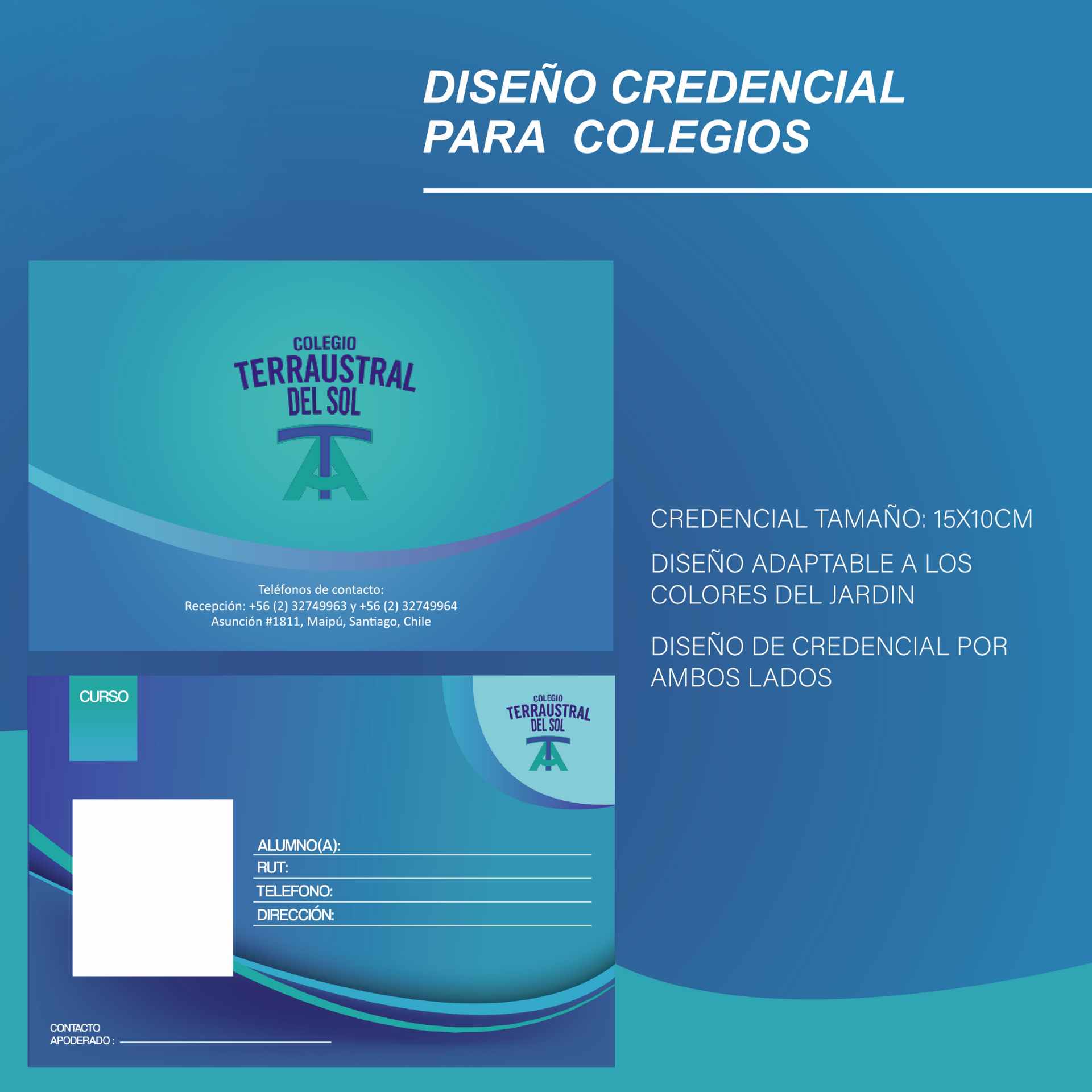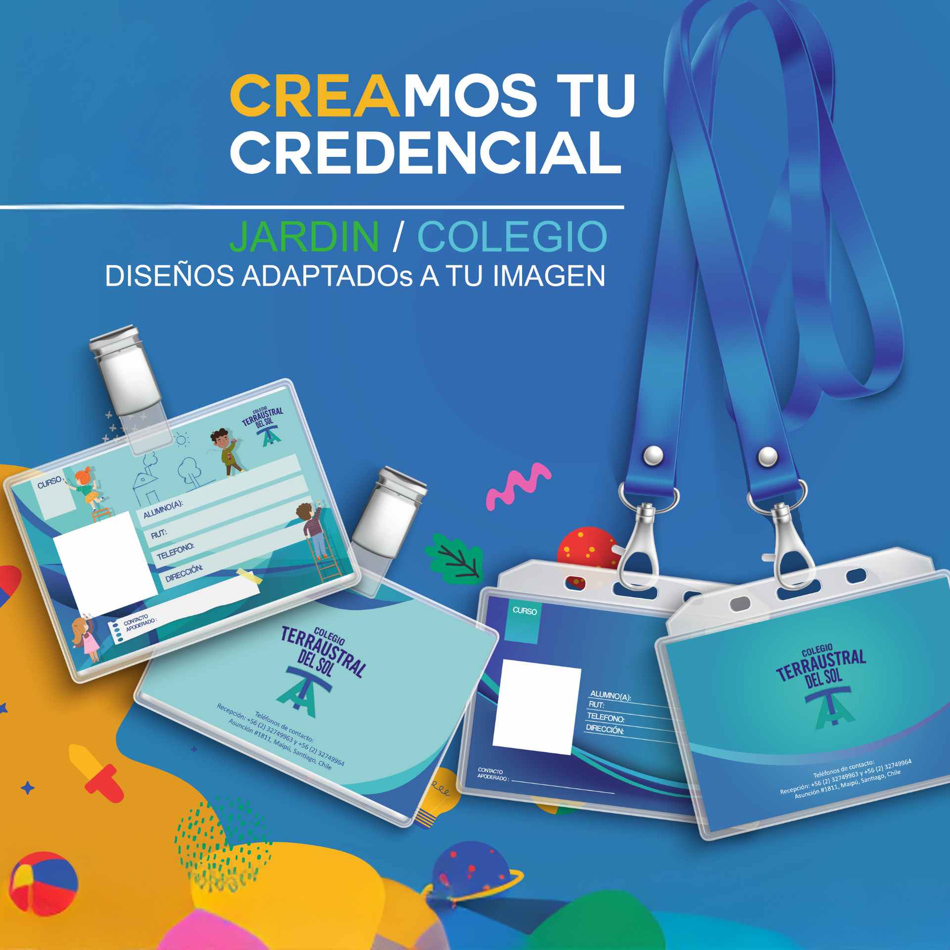 Creamos tu credencial para Jardín, Colegio o lo que necesites. Adaptados a tu imagen, puedes agregar logo del colegio o con diseños personalizados. Cotiza este servicio en el botón.